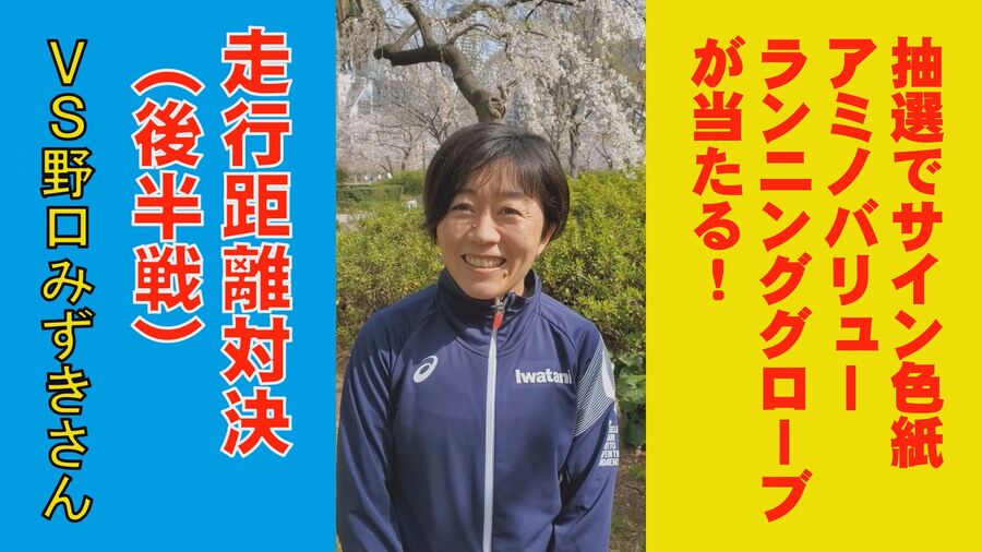 なお、動画で発表している野口みずきさんの総走行距離を、3月22日(月)から3月28日(日)までの総走行距離が上回ったランナーの皆さまの中から抽選で2名の方に、野口みずきさんのサイン色紙とアミノバリュー ランニンググローブをプレゼントいたします。